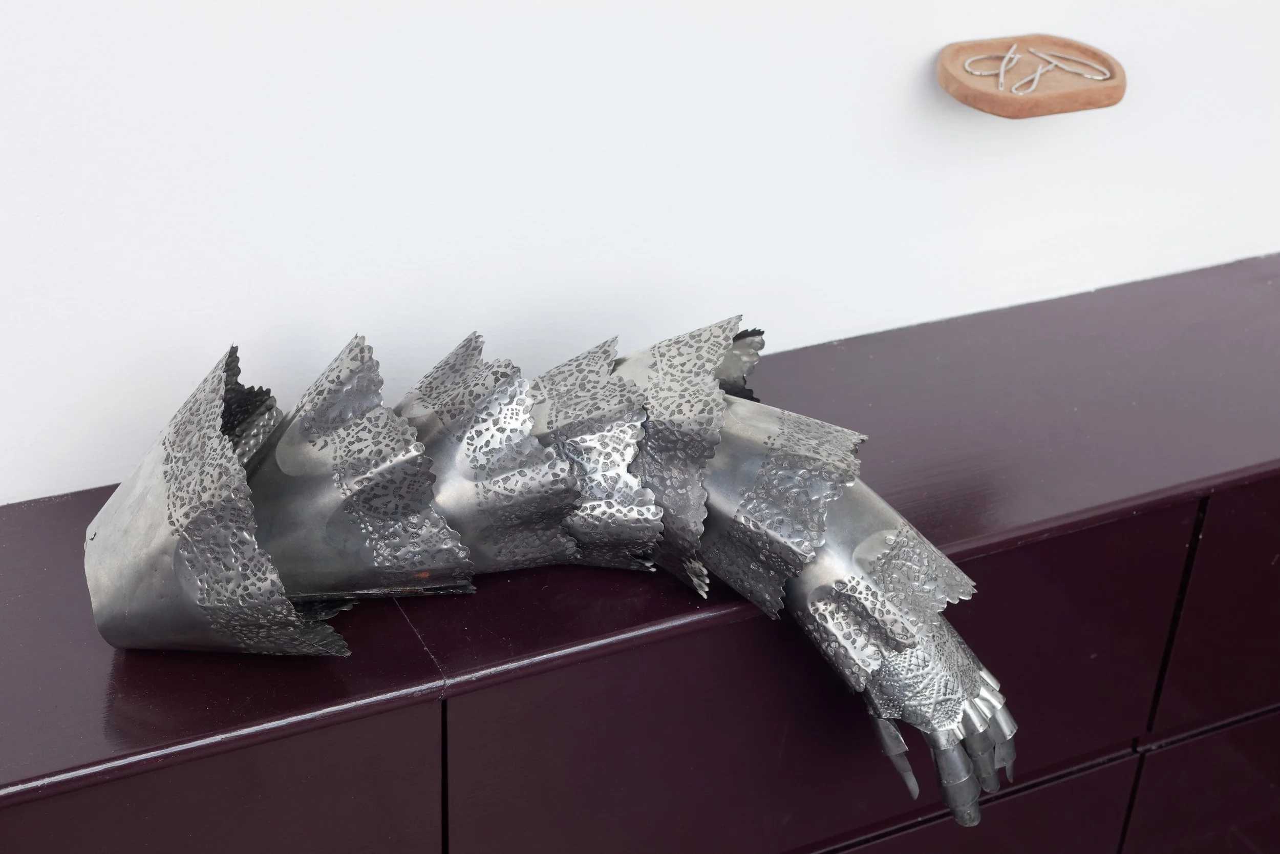 In dialogue, their practices reveal a shared sensitivity to material instability. Metal is rendered fragile and tactile, constructing a space that feels both intimate and uncanny. Here, rupture and repair intertwine, each gesture both an undoing and a mending.
